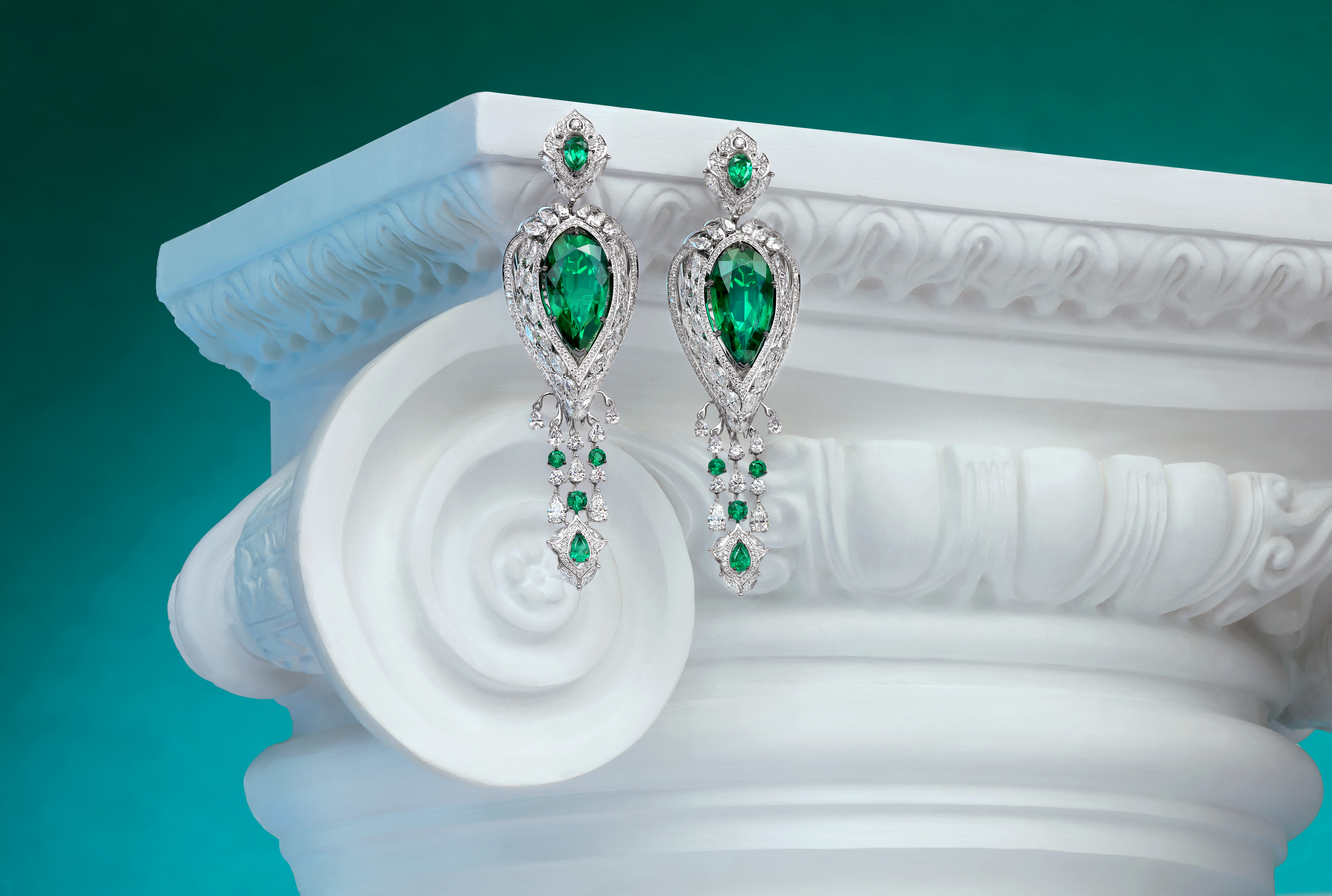 Во флагманских украшениях бренда отражаются все знания и секреты работы с этим изобилием минеральных чудес. Например, изумруды в серьгах «Великая Держава» от ювелирного дома CHAMOVSKIKH – это идеально подобранные драгоценные камни, общим весом более 32 ct, эталонных характеристик чистоты и цвета. Найти подобную пару — редкая удача для коллекционеров.