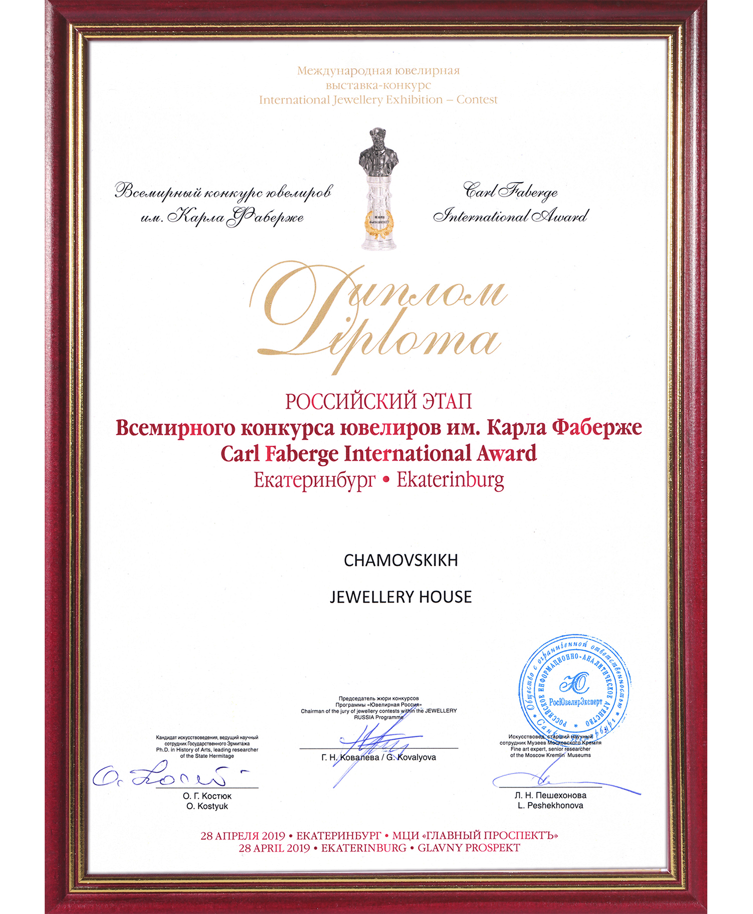 Диплом Всемирного конкурса ювелиров им.Карла Фаберже