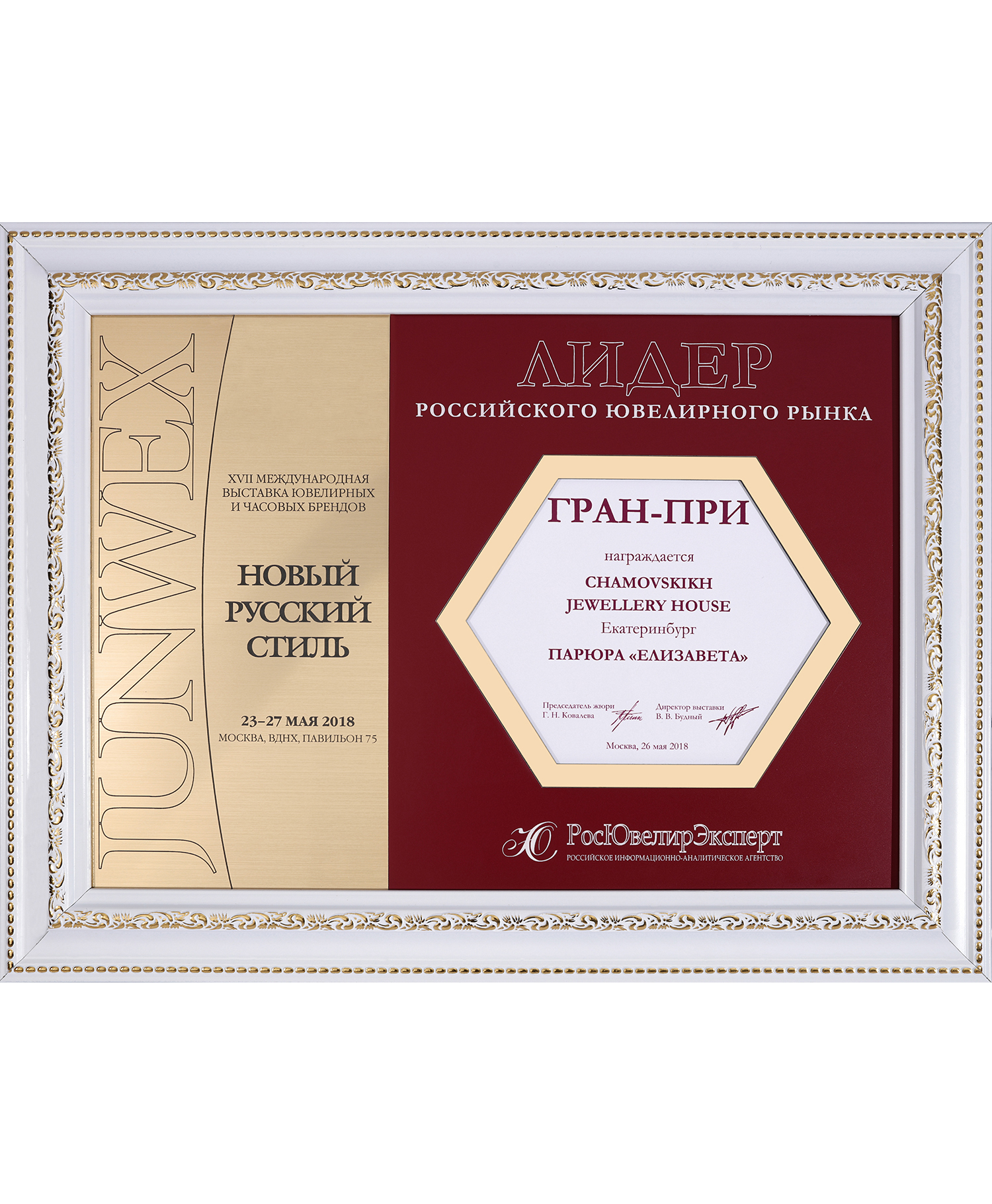 Диплом Junwex Москва. 1 место в номинации "Драгоценная фантазия" 2014 г. Гарнитур "Арабеска"