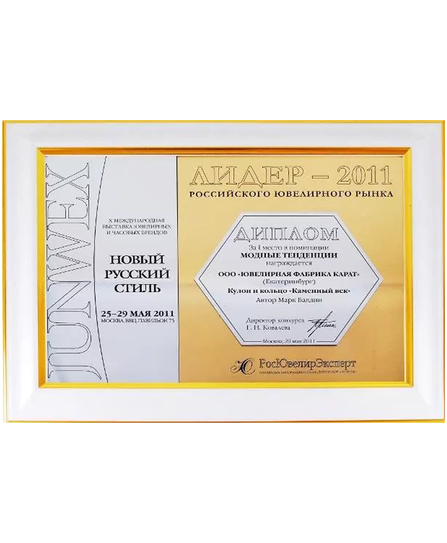 Диплом Junwex Москва. 1 место в номинации "Модные тенденции" 2011 г. Кулон и кольцо "Каменный век"