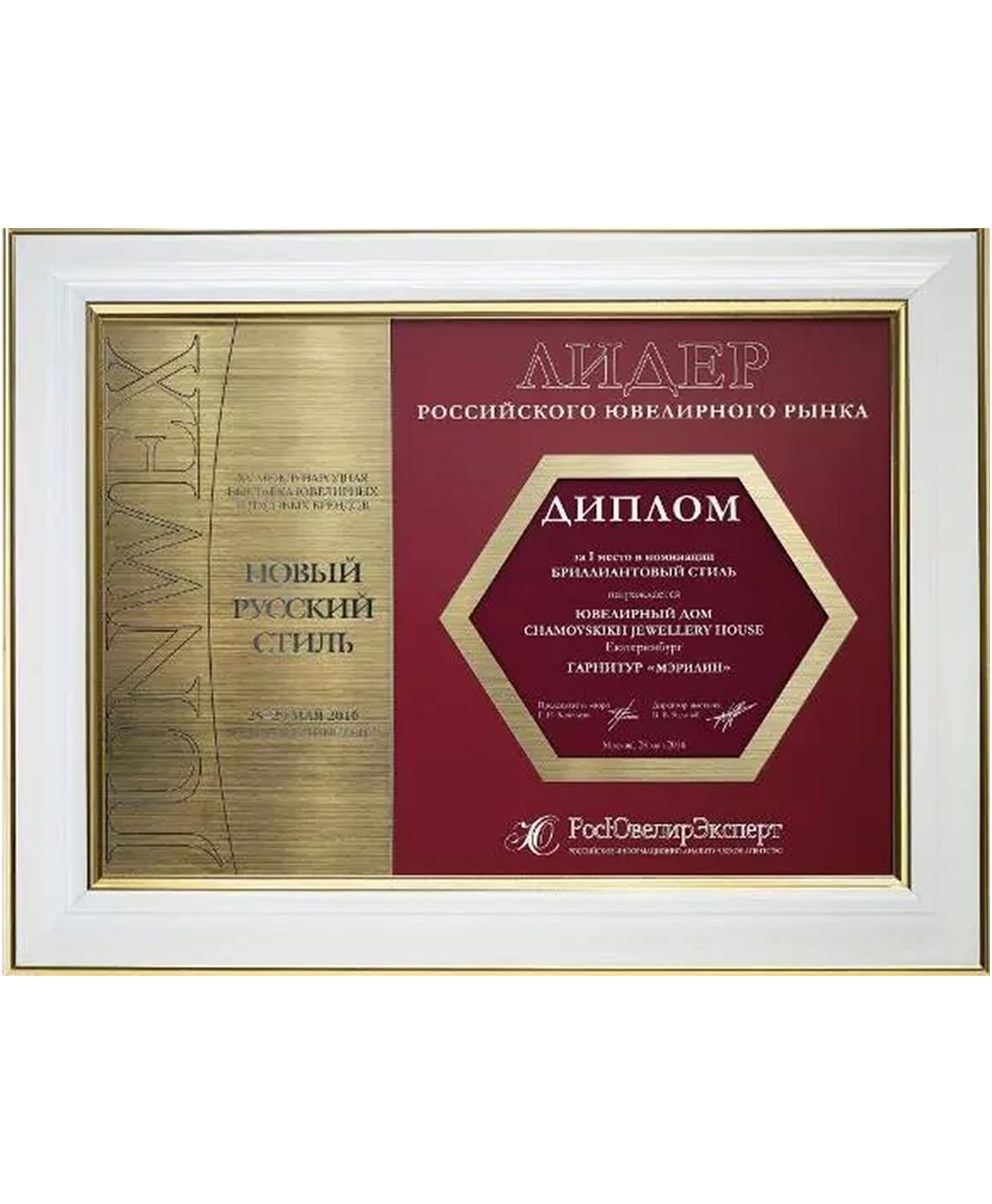 Диплом Junwex Москва. 1 место в номинации "Бриллиантовый стиль" 2016 г. Гарнитур "Мерилин"