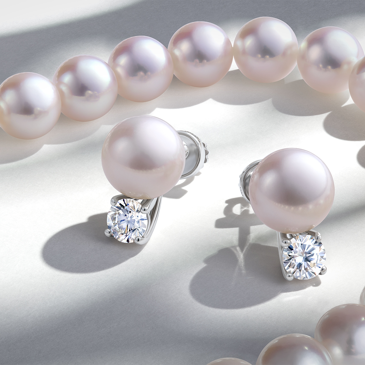 Серьги с белым жемчугом и бриллиантами, белое золото