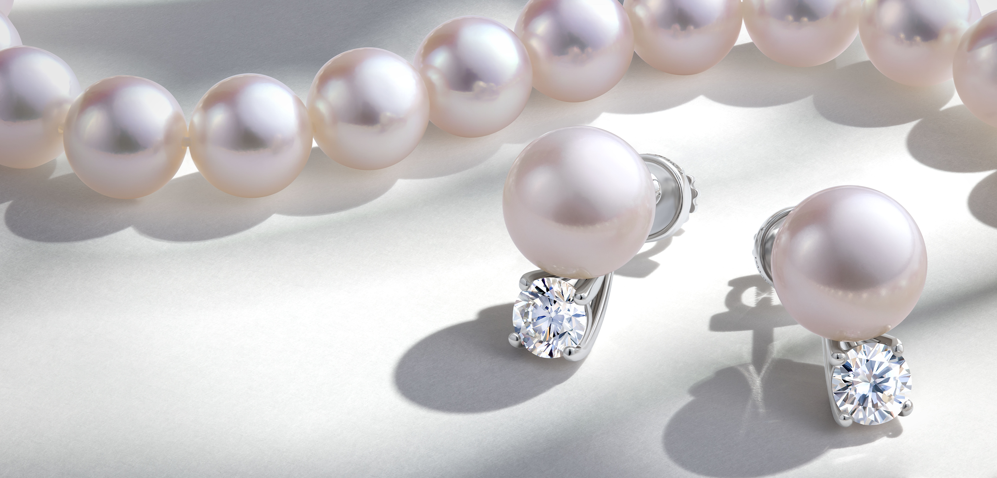 Колье с белым жемчугом и бриллиантами, белое золото