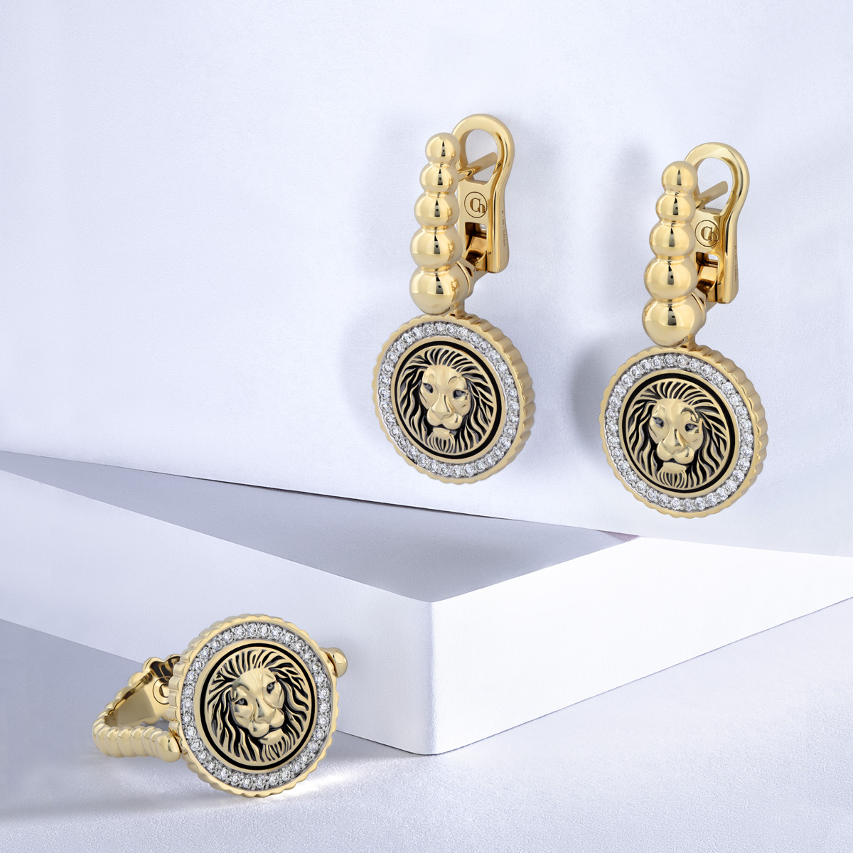 Запонки с чёрными бриллиантами, жёлтое золото, н.керамика