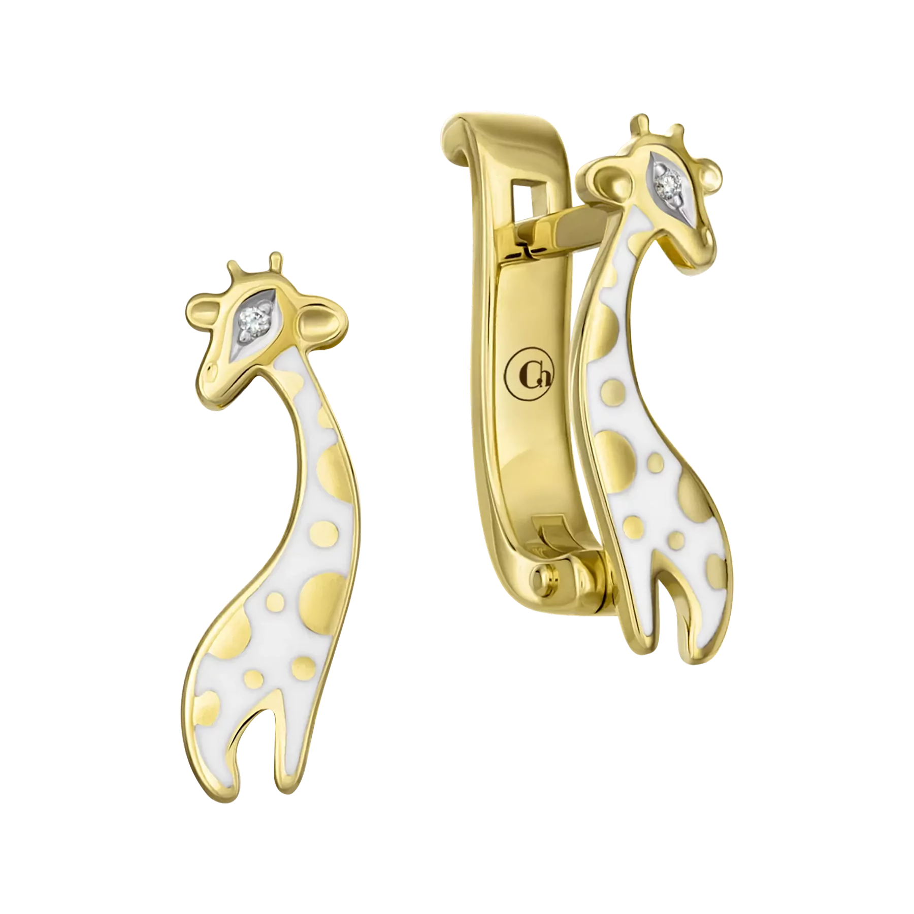Пусеты с бриллиантами, желтое золото, нанокерамика