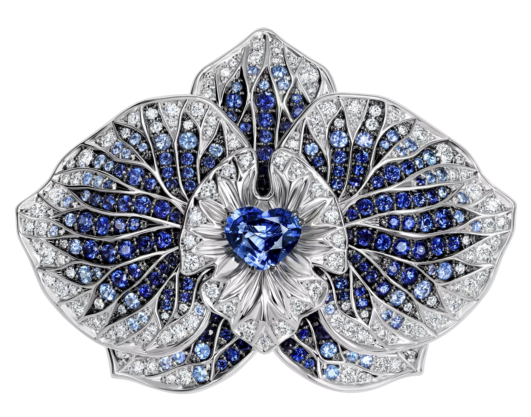 8. Драгоценности из парюры L'amour de ma vie (в переводе с французского «любовь моей жизни») выразят ваше признание убедительнее многих слов. Флагманская парюра включает колье, которое превращается в эффектную брошь — орхидею, увенчанную сапфиром огранки «сердце», кольцо и серьги. Изящный жемчуг и тонкий цветовой градиент драгоценных камней придают украшениям изысканность и нежность.