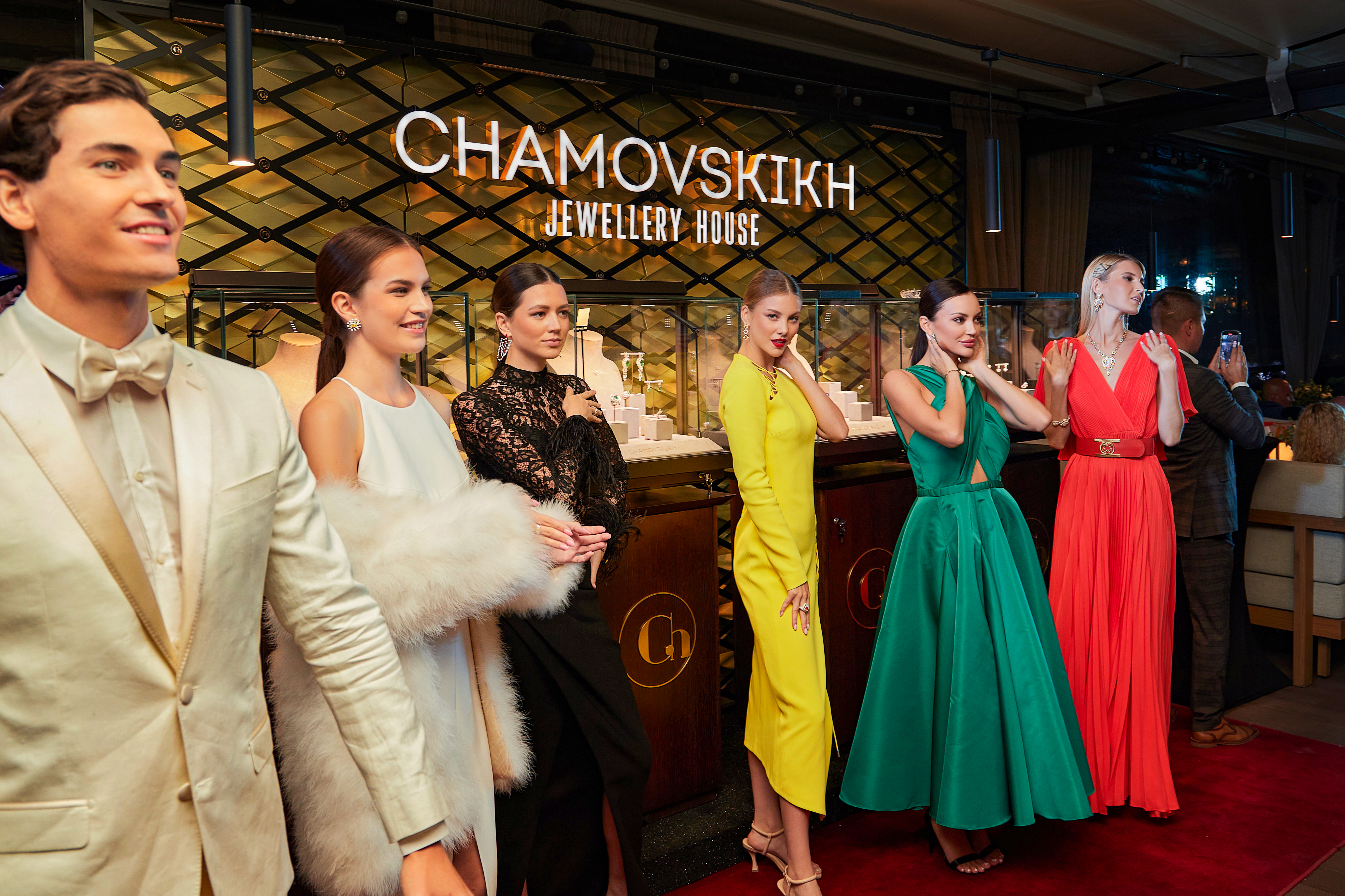 CHAMOVSKIKH выступил организатором и партнером мероприятия. Флагманские украшения бренда подчеркнули статус мероприятия и придали торжественности: драгоценности сияли на дефиле вечерних нарядов от AVENUE VIP. Показ прошел в трех частях: актуальная fashion-капсула AVENUE VIP, затем показ новой коллекции российского бренда FREE AGE, а на десерт показ украшений от ювелирного бренда CHAMOVSKIKH в сопровождении вечерних нарядов AVENUE VIP.