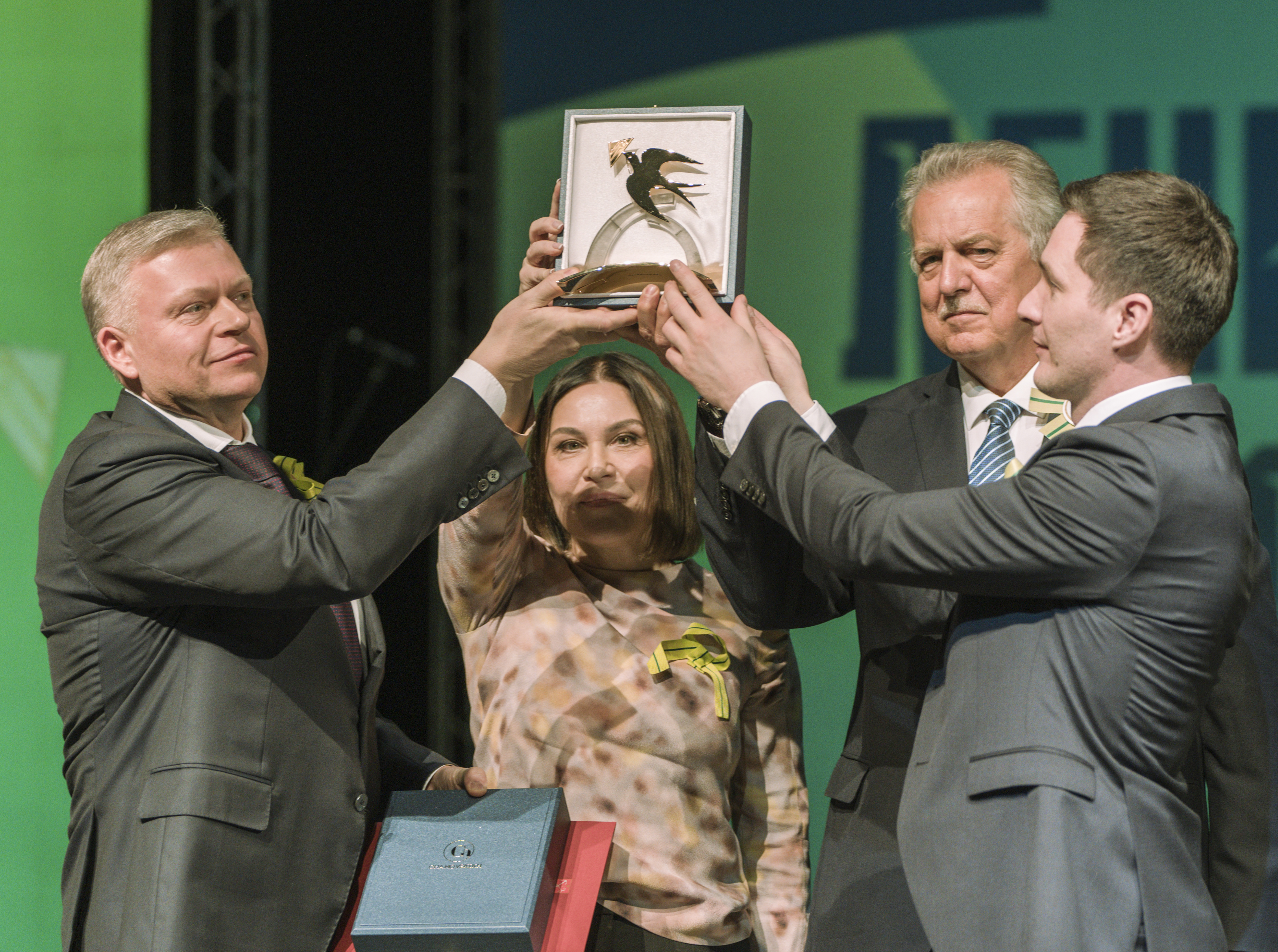В этот же вечер организаторы отправили в символический полет «Блокадную ласточку». Изображение птицы с треугольным письмом весной 1942-го года ленинградцы носили на лацкане как знак надежды на связь с Большой землей. Именно этот образ воплощен в переходящей памятной статуэтке. Скульптура «Блокадной ласточки» выполнена из льдистого кварца и металла, покрытого золотом 999-й пробы. Символ проекта создан по эскизу петербургской художницы Надежды Протопоповой ювелирами CHAMOVSKIKH в Екатеринбурге. Отметим, что в годы Великой отечественной войны уральский город стал вторым домом для тысяч эвакуированных ленинградцев и промышленных предприятий Северной столицы.